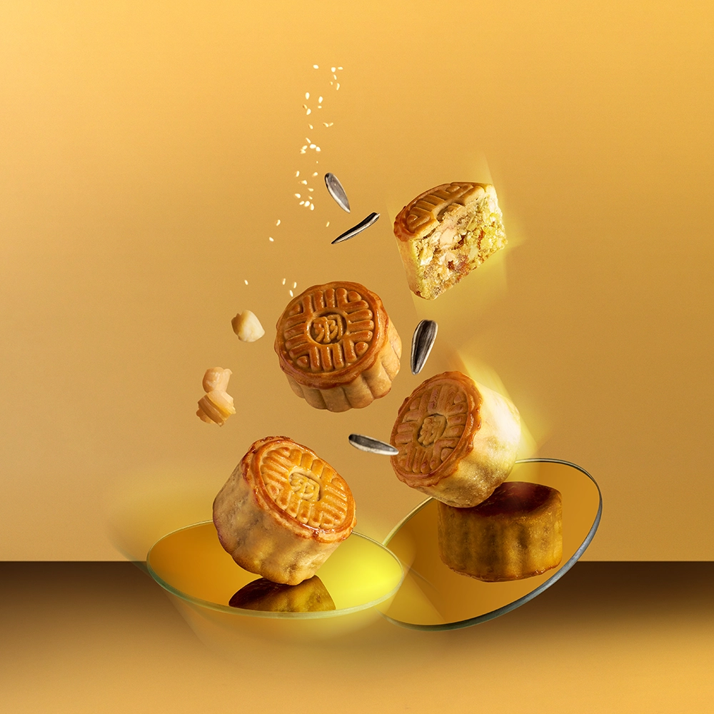 內餡融合了多種上品堅果,創造出豐富層次的口感基底。加入珍貴的頂級黃金干貝,帶來獨特的海味風情,讓每一口都充滿濃郁的鹹香與奢華感受。