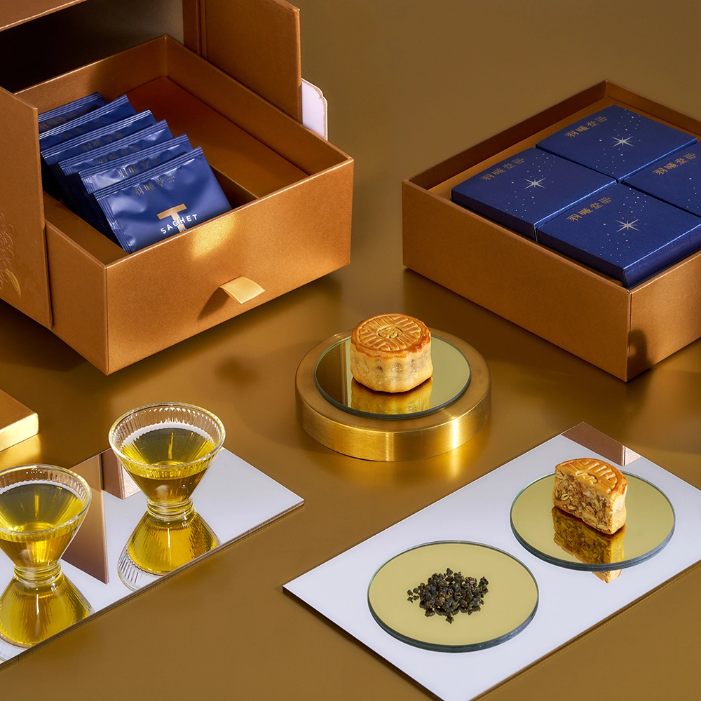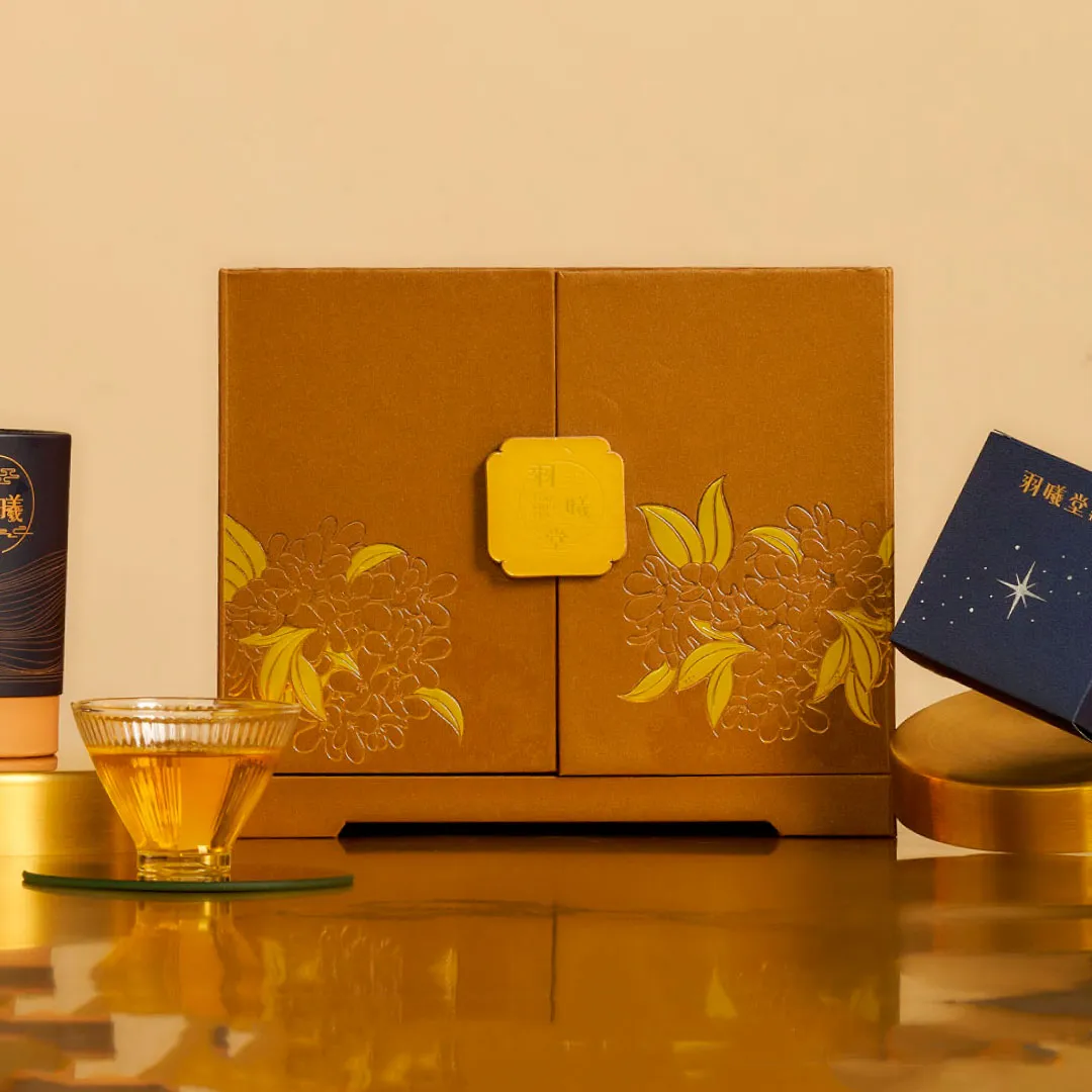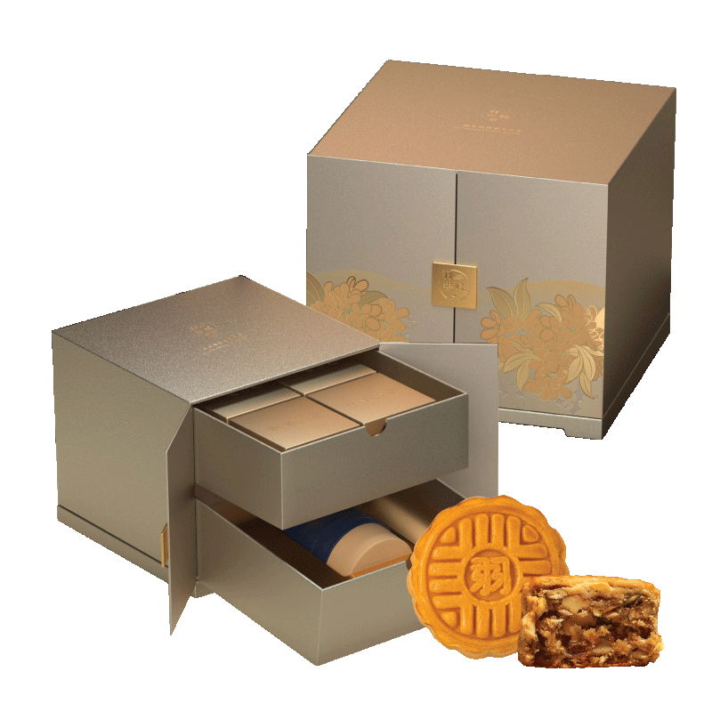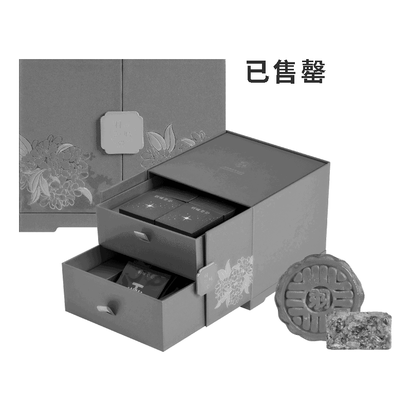 以古代的珠寶匣為靈感,抽屜式的設計更增添幾分趣味,整體採用頂級藝術紙包覆,華貴金色搭配桂花圖樣盡顯優雅大器。