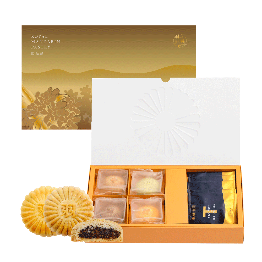 顛覆傳統漢餅的「頤品酥」是由唐朝宮廷花瓣茶點造型為啟發,結合西式糕餅手藝,以比利時奶油菠蘿酥皮,凝聚華貴酥心口感重現宮廷風華。內餡融合冬瓜餡料以及頂級台灣茶,清香與雅致交織猶如詩意盛開,令味蕾與心靈同步舞動於芳華時光。柔軟口感與茶香芬芳相得益彰,令人陶醉其中。